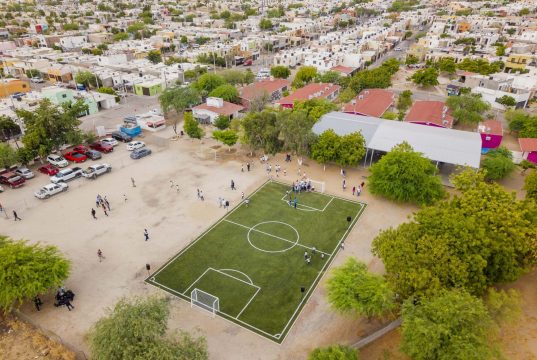 Hacen equipo a favor del deporte con la entrega de cancha de futbol en Las Lomas
