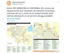 Por reparaciones este viernes colonias del norte y sur de Hermosillo tendrán afectación...