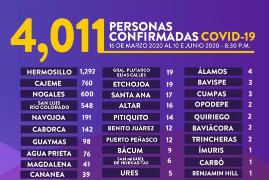 Rebasa Sonora los 4 mil contagios por Covid-19 y llega a 331 defunciones