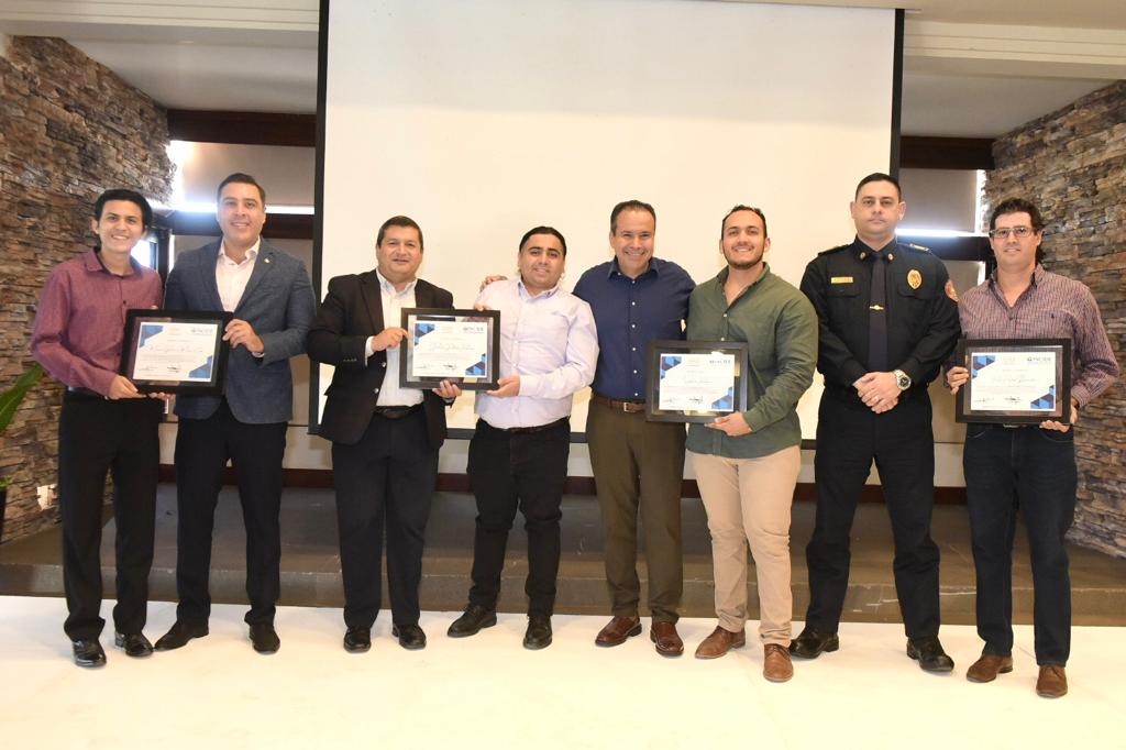Miembros de la asociación entregaron un reconocimiento al Presidente Municipal por su participación en la ceremonia con su conferencia magistral “Gobernanza y juventud”.