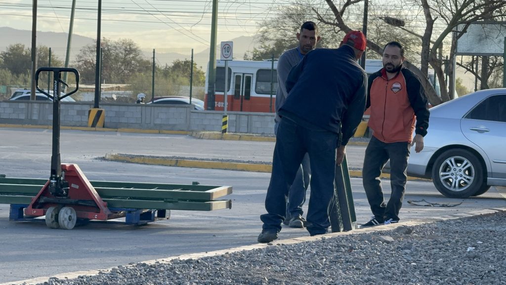 Personal del supermercado llegó cerca de las 7:30 de la mañana con un montacargas para retirar las puertas dañadas por el vehículo que embistió a las víctimas, las cuales permanecían en el estacionamiento junto a partes desprendidas del carro.