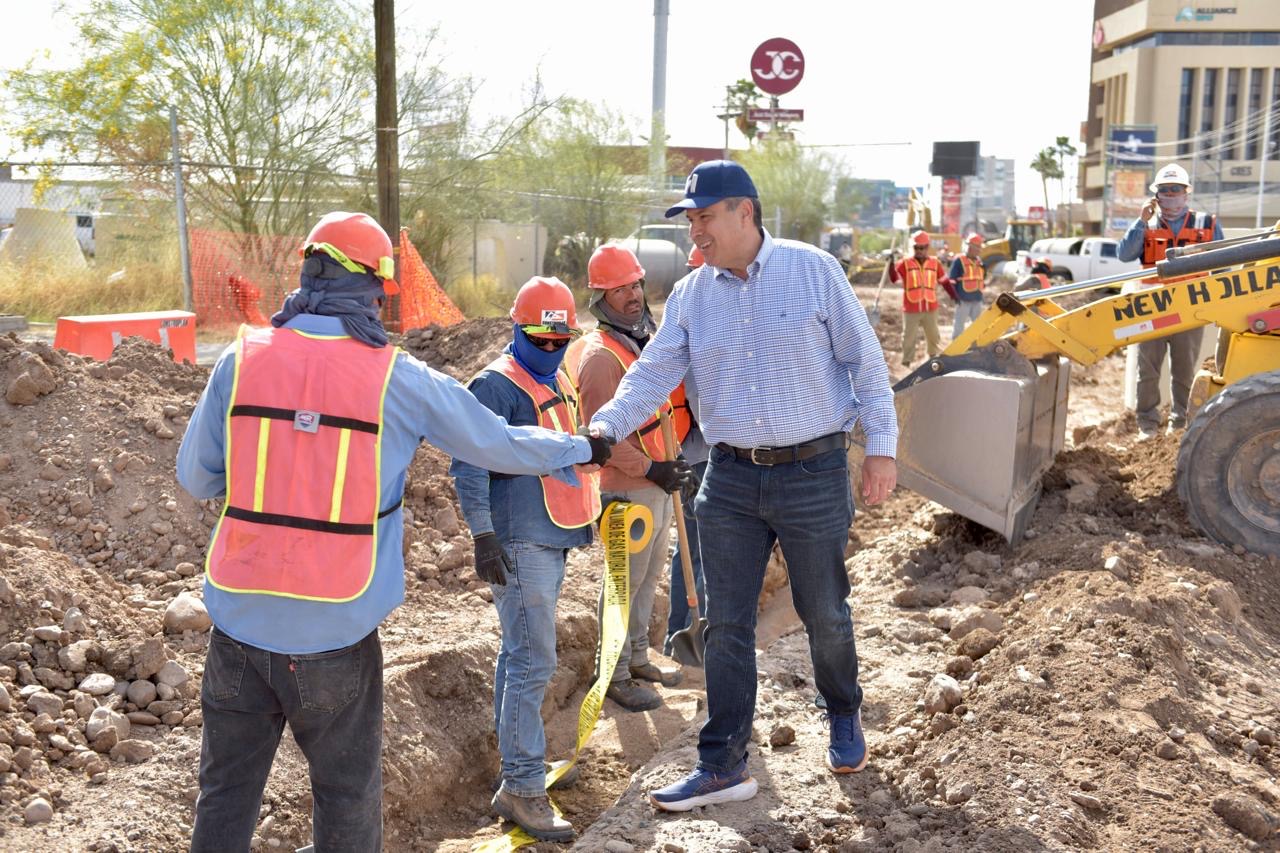 Acompañado por Astarté Corro Ruiz, titular de la Dirección General de Desarrollo de Infraestructura constató el proceso constructivo de la instalación de tubería sanitaria de 36 pulgadas que forma parte de los elementos indispensables para esta obra.