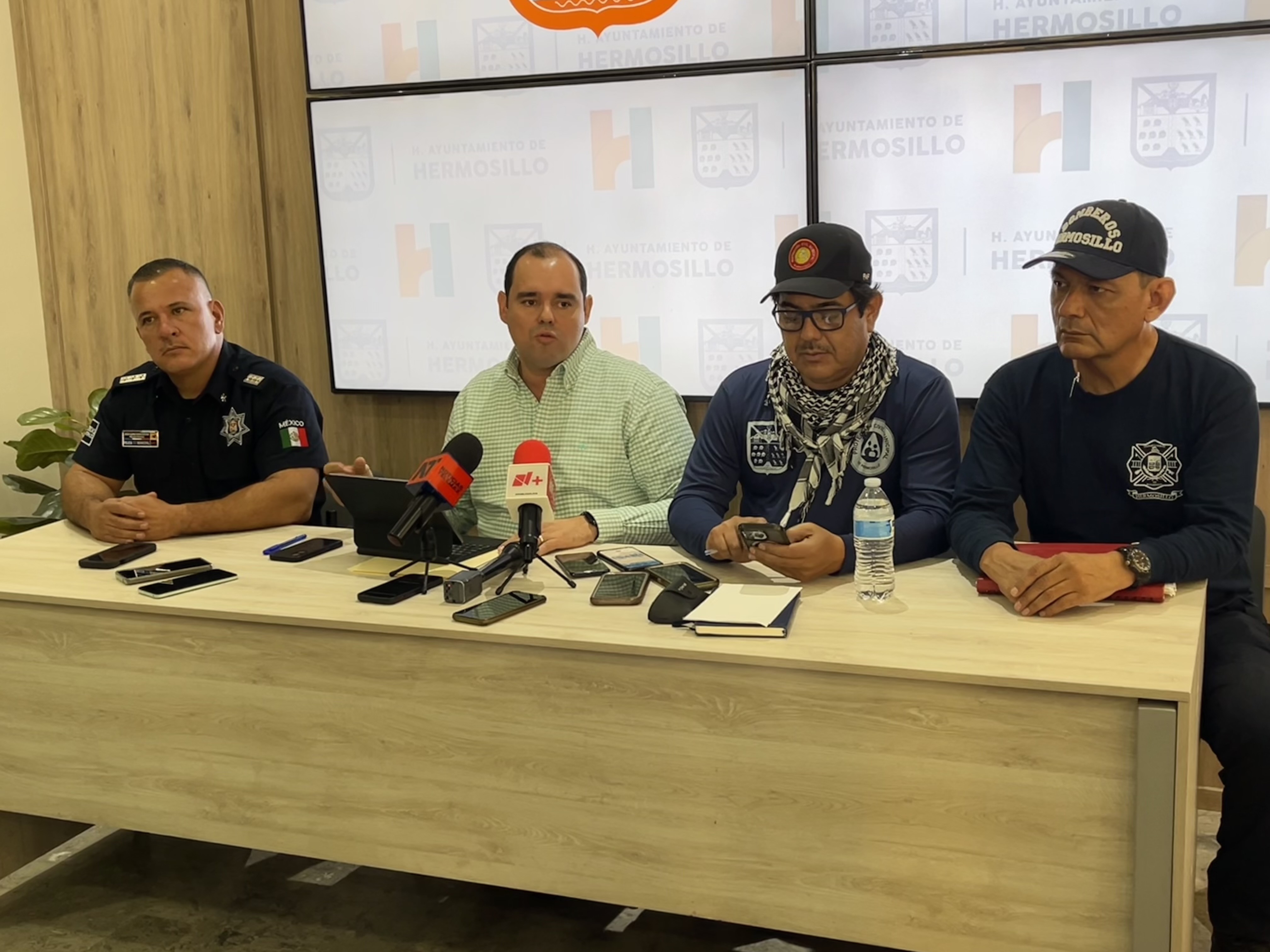 Estuvo acompañado por el Comisario General de Seguridad Pública, Alonso Durón Montaño; el director de Bomberos de Hermosillo, Juan Francisco Matty; y el coordinador de Protección Civil Municipal (CMPC), Fernando Morales Flores.