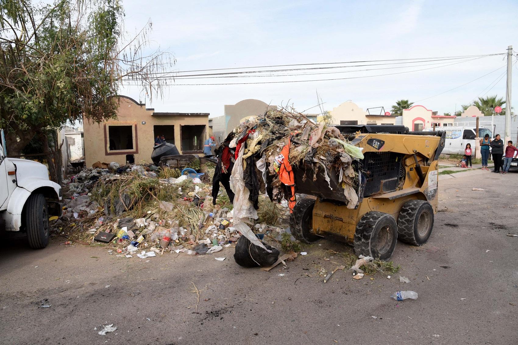 Personal de la Unidad Municipal de Protección Civil (UMPC), Servicios Públicos y la Policía Municipal realizaron un operativo de rescate de espacios públicos en la colonia Real de Carmen, de donde retiraron aproximadamente 15 toneladas de basura de dos casas abandonadas.