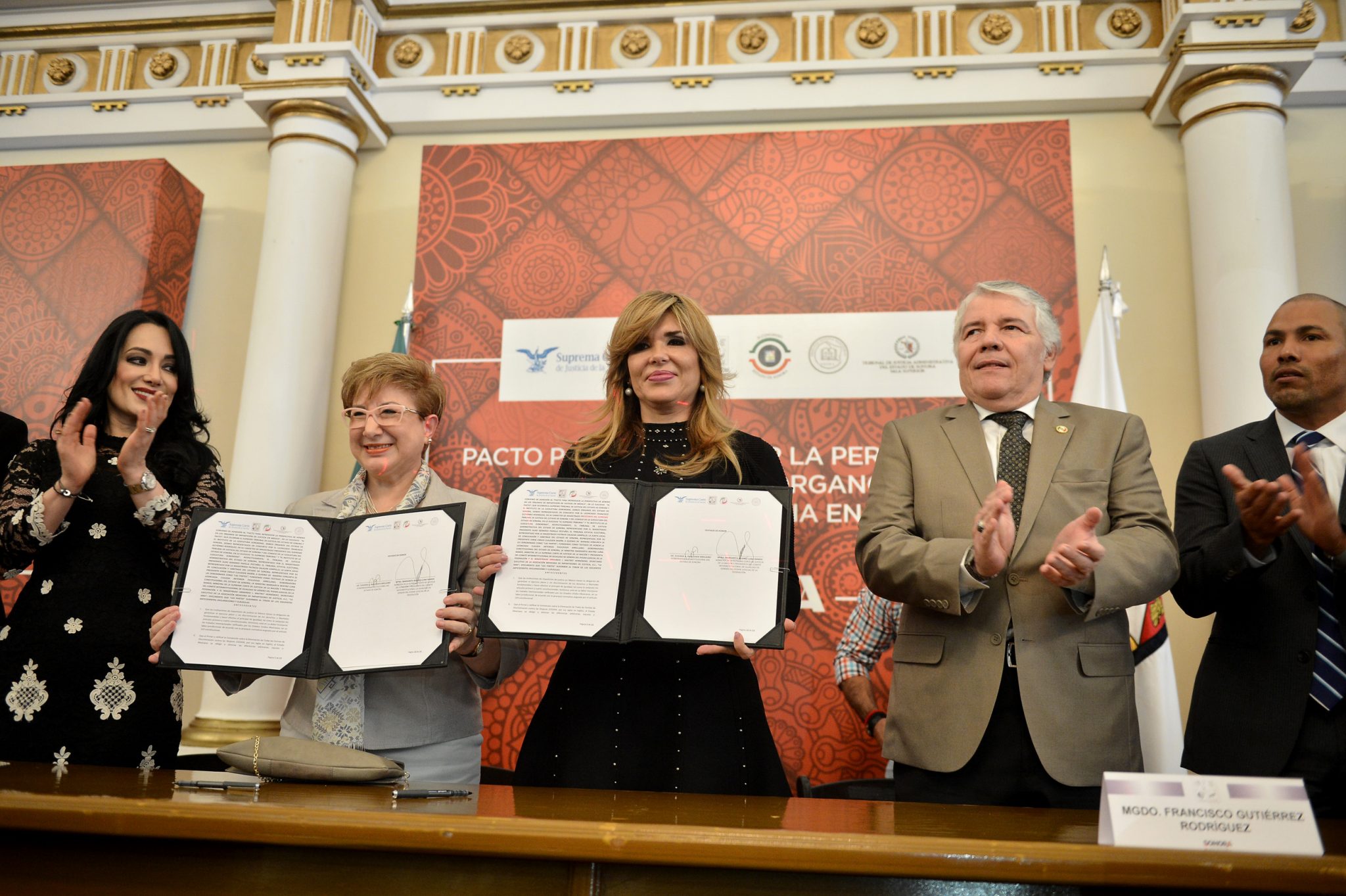 La Gobernadora Claudia Pavlovich Arellano y la Ministra de la Suprema Corte de Justicia de la Nación y Presidenta del Comité Interinstitucional de igualdad de género del Poder Judicial de la Federación, Margarita Beatriz Luna Ramos, atestiguaron la formalización de este acuerdo con el que Sonora se suma al denominado Pacto para introducir la perspectiva de género en los órganos de impartición de justicia en México.