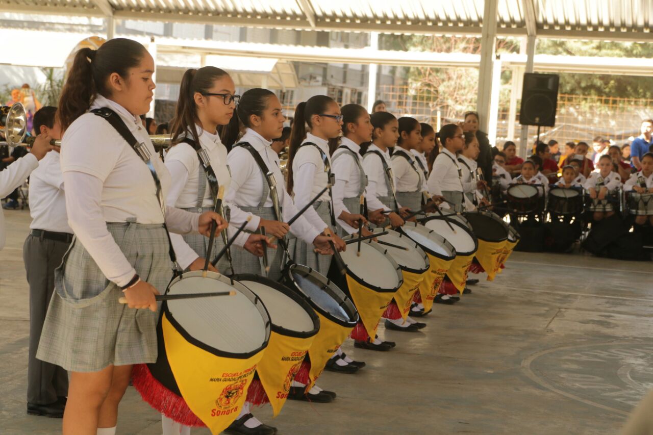 “Estar aquí enalteciendo los valores patrios nos debe hacer sentir muy orgulloso”, añadió al hacer un reconocimiento a los padres de familia, a los maestros y a los instructores de las bandas de guerra.