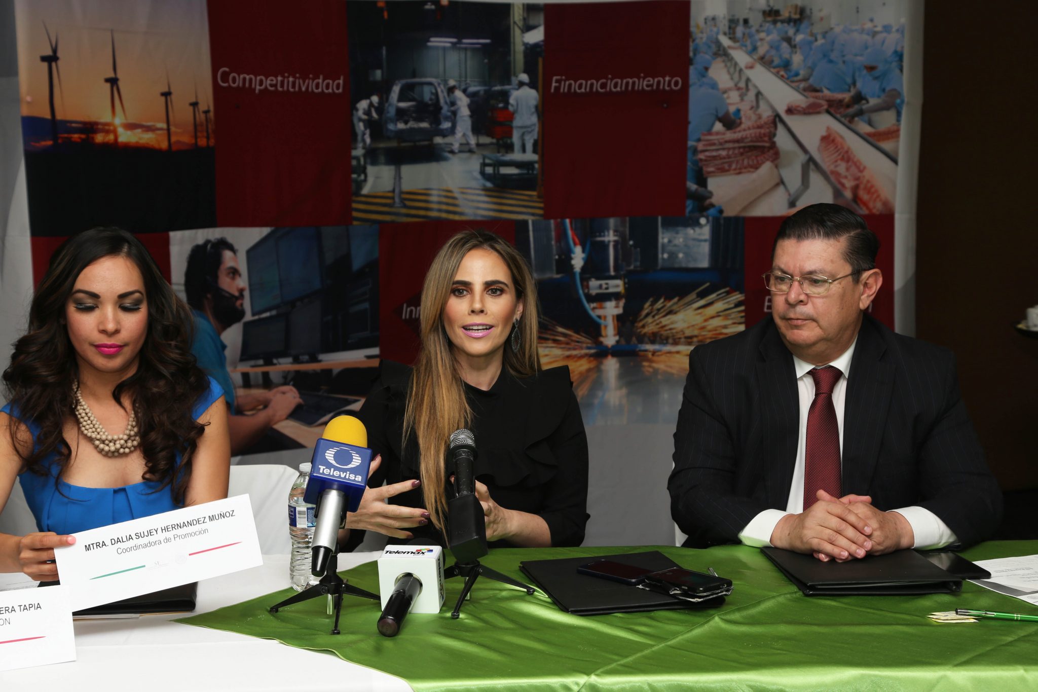 Presentes, Dalia Sujey Hernández Muñoz, Coordinadora de Promoción de la SE; Andrés Escobar, en representación del Delegado de Gobernación, Wenceslao Cota Montoya; y Fernando de la Rosa, titular de Nacional Financiera en Sonora.
