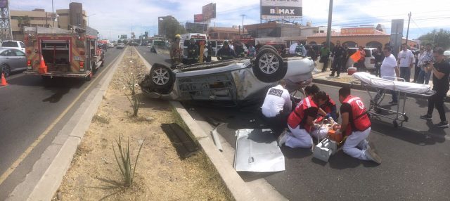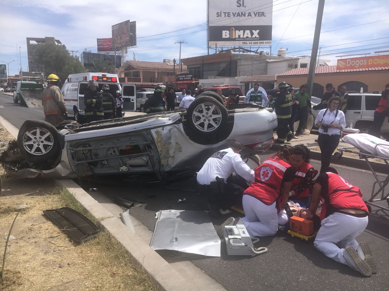 Un aparatoso accidente, donde un carro se volcó y resultaron dos personas heridas es el que presenciaron cientos de conductores que transitaron esta mañana por el bulevar Colosio casi esquina con Solidaridad, en la escena, ambulancias, patrullas y personal de los servicios de emergencias hacían lo propio para el rescate y atención de las víctimas que en este caso se trataba de un hombre y una mujer, quienes se prestaron a participar para realizar un vídeo preventivo para hacer conciencia respeto a los riesgos de manejar bajos efectos de alcohol o con distractores como lo es el uso del celular.