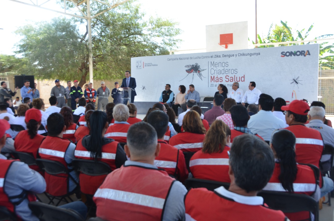 Acompañado de Arturo César García Arellano, Director General de Salud Pública Municipal en Hermosillo, encabezó el inicio de la Primera Jornada Nacional de Lucha Contra Dengue, Chikungunya y Zika 2018.