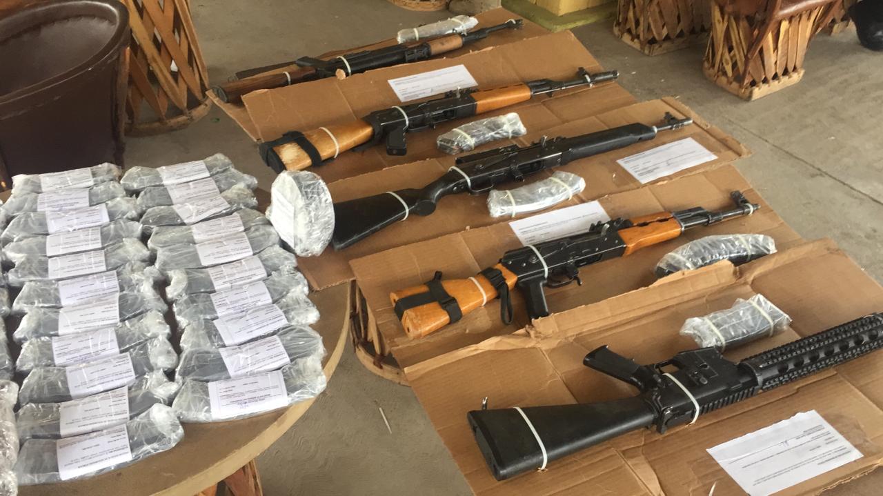 Las armas aseguradas son: 4 rifles AK 47, 1 rifle calibre 5.56, 26 cargadores del rifle AK 47, 6 cargadores de calibre 50 mm.