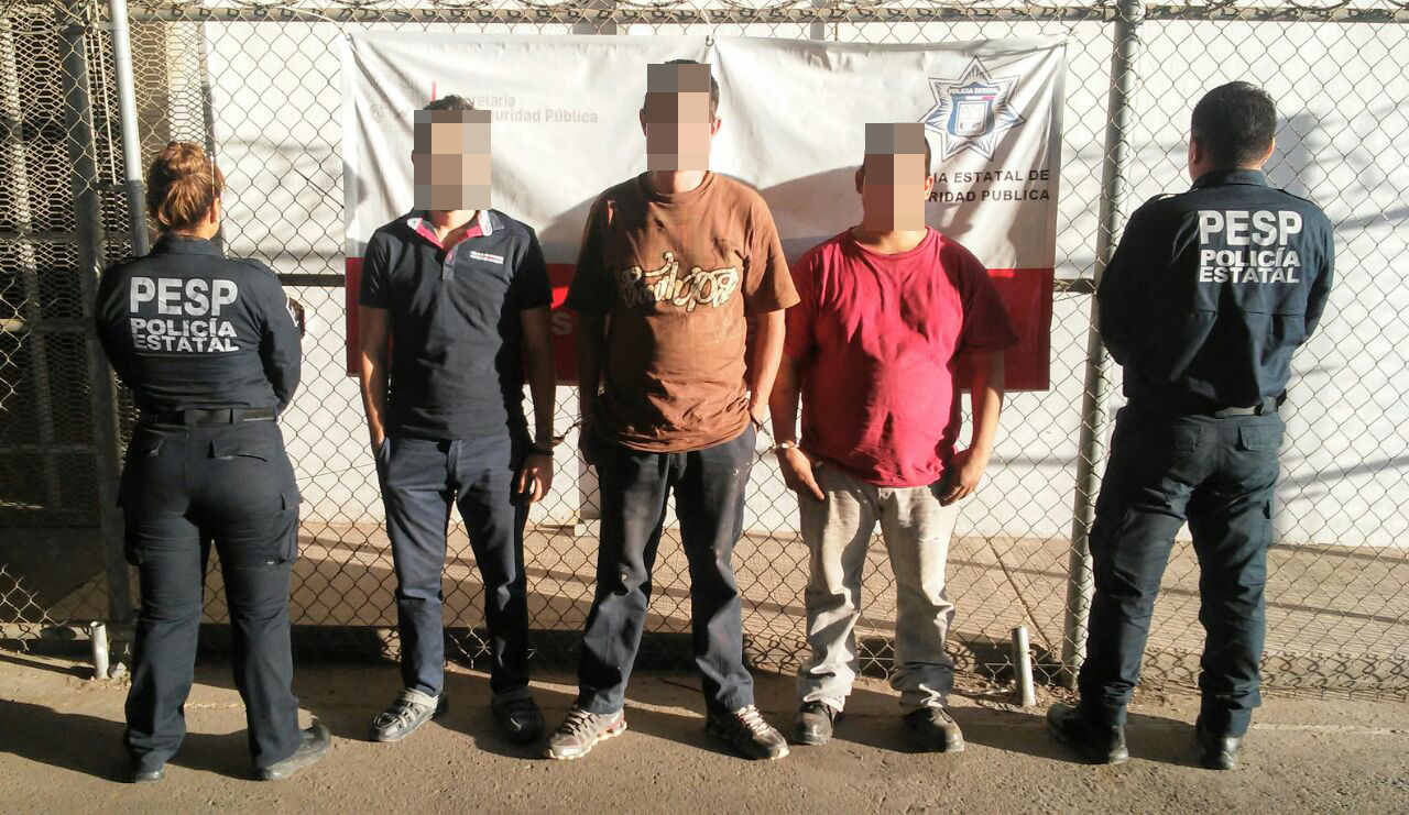 Agentes de la Policía Estatal de Seguridad Pública (PESP), aseguraron a tres personas de sexo masculino, por su probable responsabilidad en el delito de robo de vehículo.