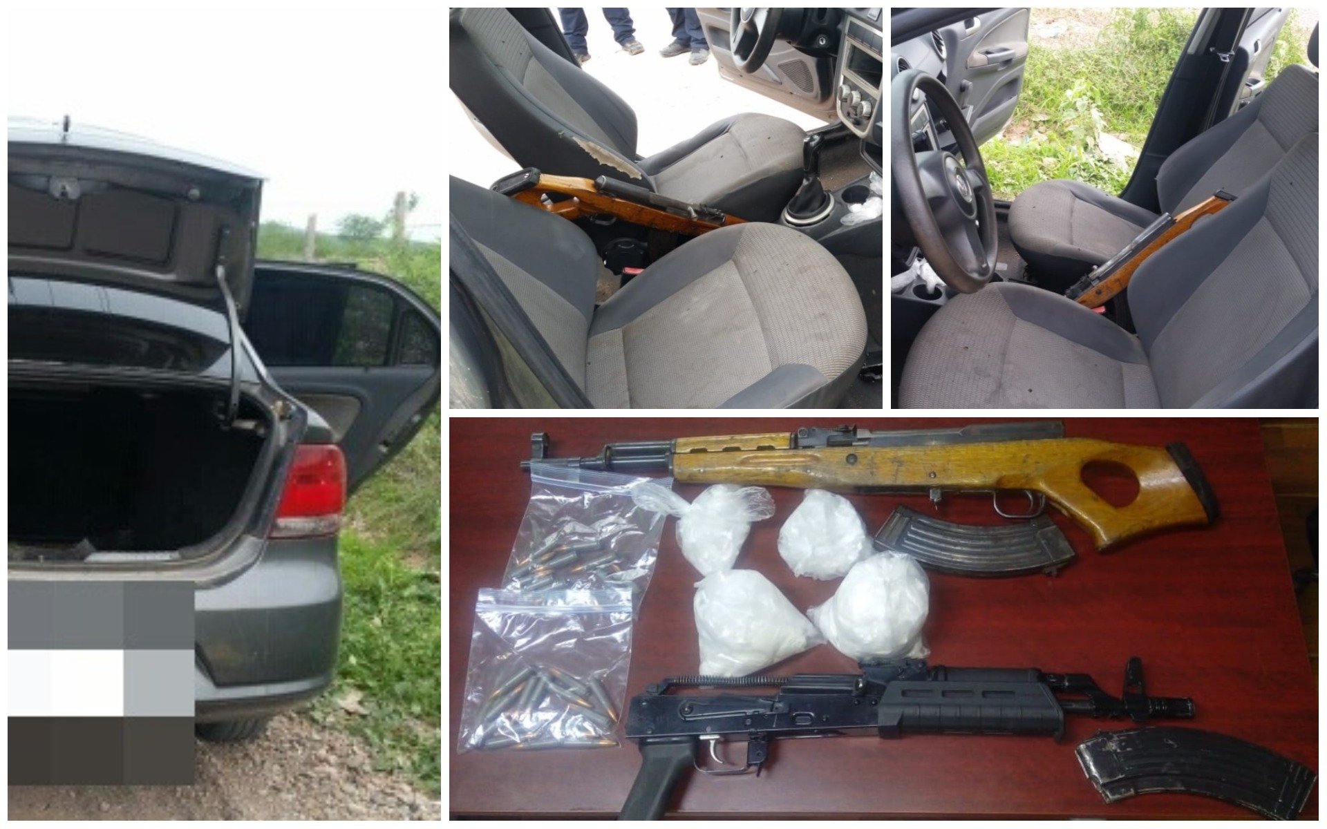 Los oficiales al acercarse al vehículo a simple vista observaron dos armas de grueso calibre AK 47, con cargador abastecido cada una, así como 4 bolsas transparentes conteniendo en su interior un total de 115 envoltorios con sustancia granulada con las características físicas a la droga conocida como cristal.