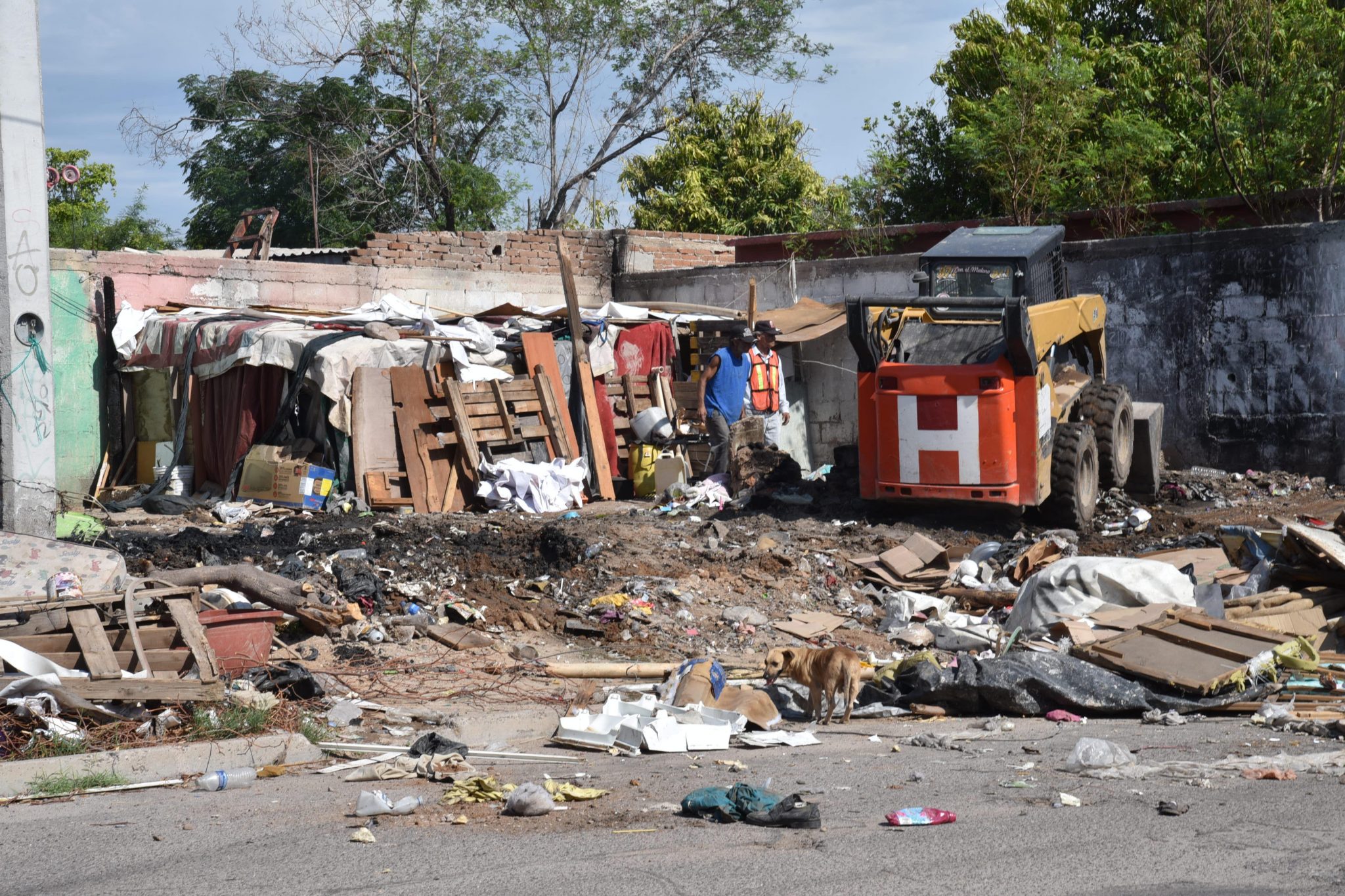 Debido al reporte de los vecinos, personal de Servicios Públicos, en coordinación con la Unidad Municipal de Protección Civil (UMPC), visitó el lugar con maquinaria especial para levantar alrededor de nueve toneladas de desechos, como lonas, trapos, madera, basura y muebles en mal estado que eran un nido de fauna nociva.