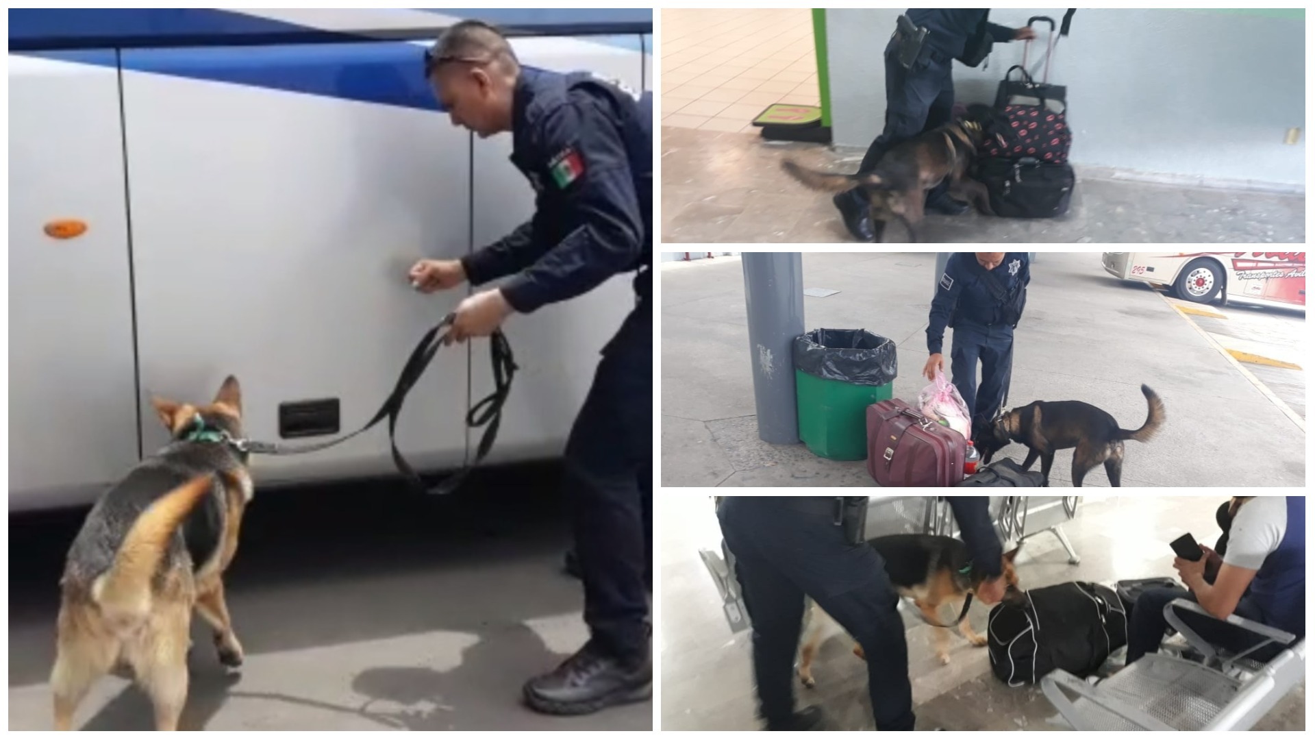 Con el objetivo de brindar tranquilidad y seguridad a los pasajeros de diferentes líneas de transporte foráneo que realizan viajes en este período vacacional, el grupo canino K9 de la Policía Estatal de Seguridad Pública (PESP) realiza inspecciones en el interior de la central de autobuses