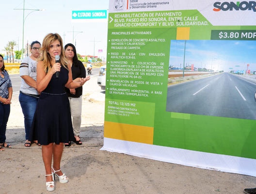 La Gobernadora Pavlovich entregó la rehabilitación del bulevar Paseo Río Sonora, entre Ignacio Comonfort y bulevar Solidaridad; y la calle Dr. Domingo Olivares entre bulevar Luis Encinas y bulevar Solidaridad, en las cuales, a través de la Secretaría de Infraestructura y Desarrollo Urbano, (SIDUR), se invirtieron 12 millones 360 mil pesos.