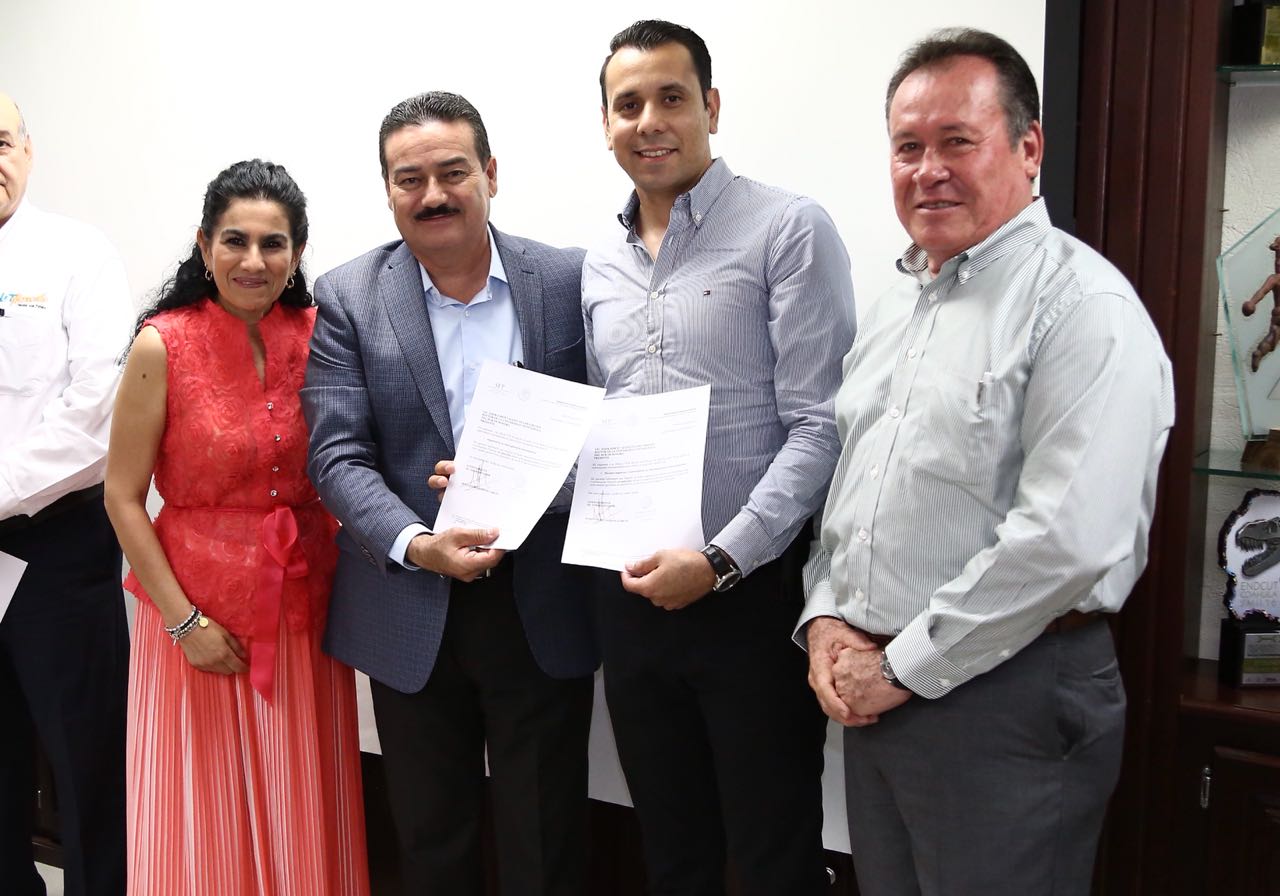 El Encargado de Despacho de la Secretaría de Educación y Cultura (SEC), acompañado de la Directora Académica de la Coordinación General Nacional de Universidades Tecnológicas, Silvia Alejandra Guzmán Saldaña, entregó los oficios de autorización a Adalberto Calderón Trujillo y Eder Josué Valenzuela Beltrones, rectores de la UTH y la UTS, respectivamente.
