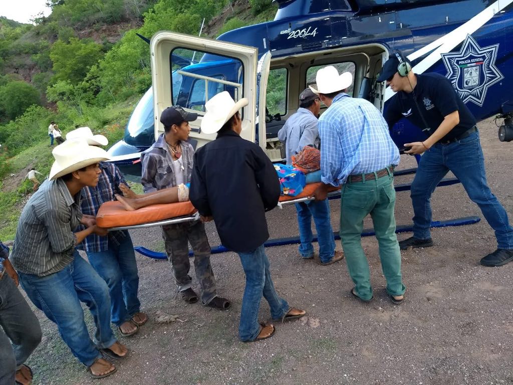 La persona, comentó el funcionario, sufrió una caída en su domicilio ubicado en la localidad de Bavícora y por la sospecha de presentar una fractura de cadera se solicitó al Gobierno del Estado su apoyo para trasladarla de manera urgente al hospital más cercano, ya que por la condición de agua en los arroyos no se podía ingresar por tierra.