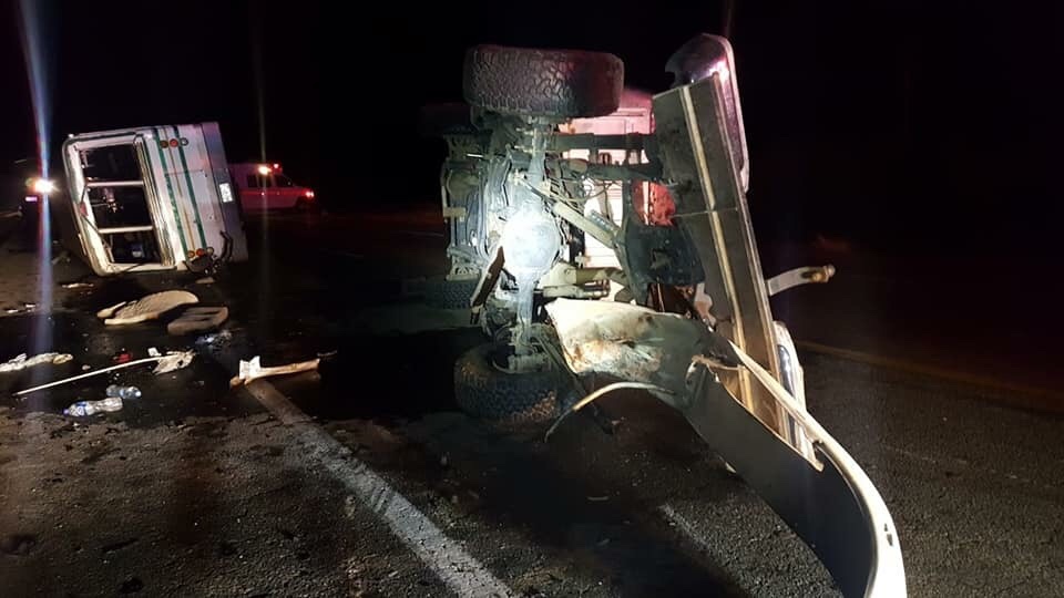 Los hechos ocurrieron la madrugada de este viernes antes del amanecer en el kilómetro 233 de la carretera Caborca- Sonoyta, cuando aparentemente se accidentaron la unidad policial y el camión con migrantes, resultando 8 Centroamericanos lesionados y dos agentes de la corporación; según los testigos después llegó un tercer tractocamión cargado con frutas y verduras que también resultó afectado en el percance.