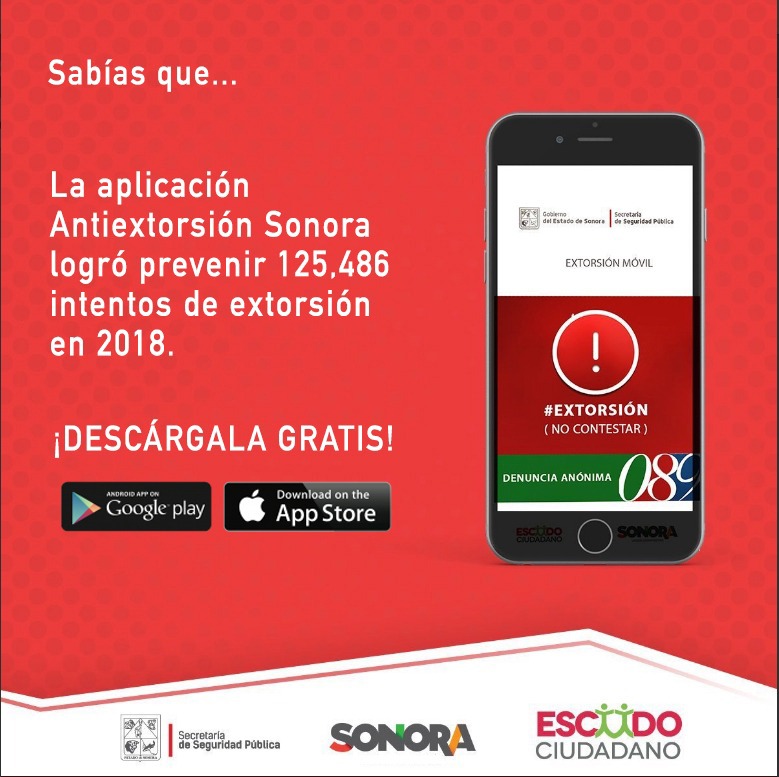 Exhorta la Secretaría de Seguridad Pública del Estado a descargar la aplicación para celular, Anti Extorsión Sonora, la cual cuenta con un registro de 63 mil 990 números telefónicos de ciudadanos con la APP instalada.
