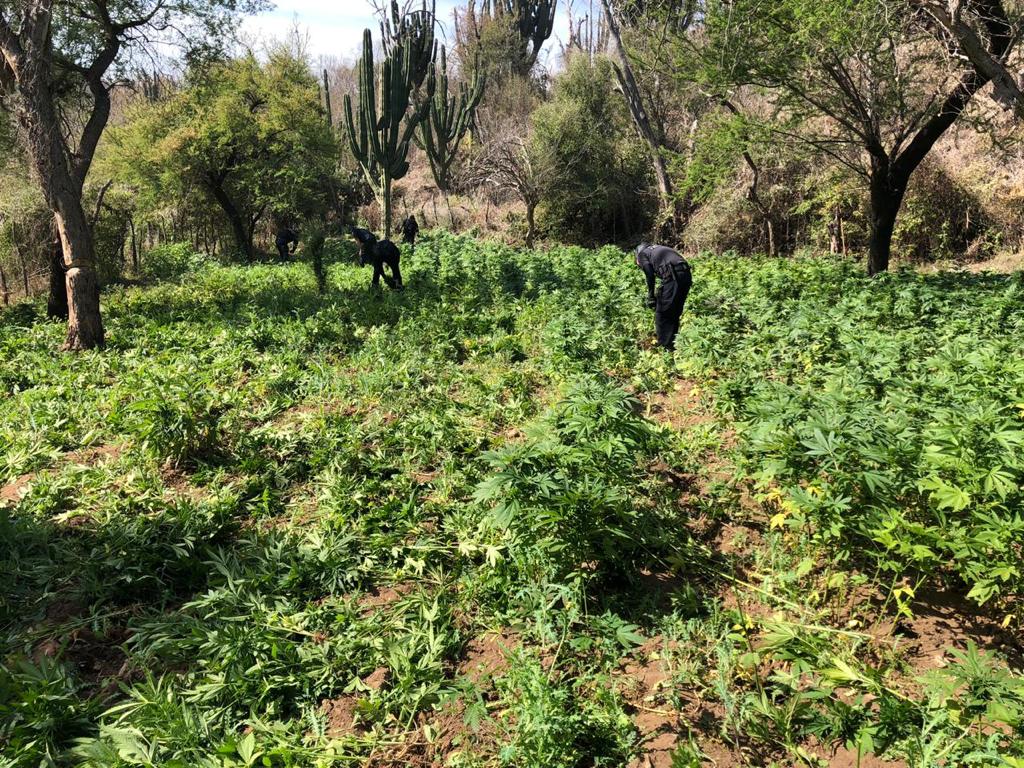 Por segundo día consecutivo, oficiales de la Policía Federal destruyeron otros dos enormes plantíos de marihuana en la sierra de Álamos, al sur de Sonora; en dos días suman más de 25 mil metros cuadrados de cultivos de esta droga, alrededor de 500 mil plantas con un peso aproximado de 144 toneladas de hierba.