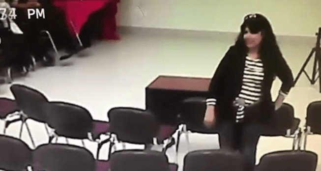 En la grabación, la regidora se encuentra alejada de un grupo de personas y se percata que un celular se encuentra en una de las sillas. Al momento en que asume que nadie la está viendo, da la vuelta y toma el celular.
