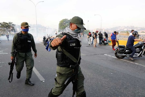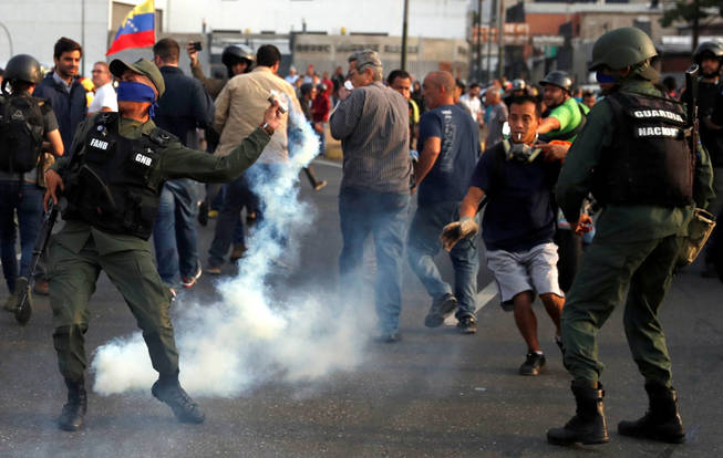 Un grupo de la Guardia Bolivariana ha comenzado a lanzar gases lacrimógenos en los alrededores de la base Francisco de Miranda.
