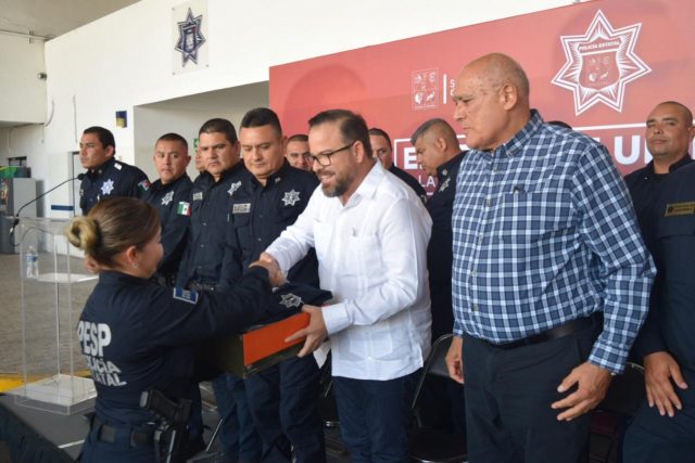Durante la ceremonia se contó con la bienvenida del comisario General de la PESP, Ramón Mancilla Macedo, quien agradeció el compromiso del Gobierno del Estado por dignificar a los policías estatales, además exhortó a todos los policías y jefes de grupo a portar con valor, responsabilidad y honestidad el uniforme que les fue entregado.