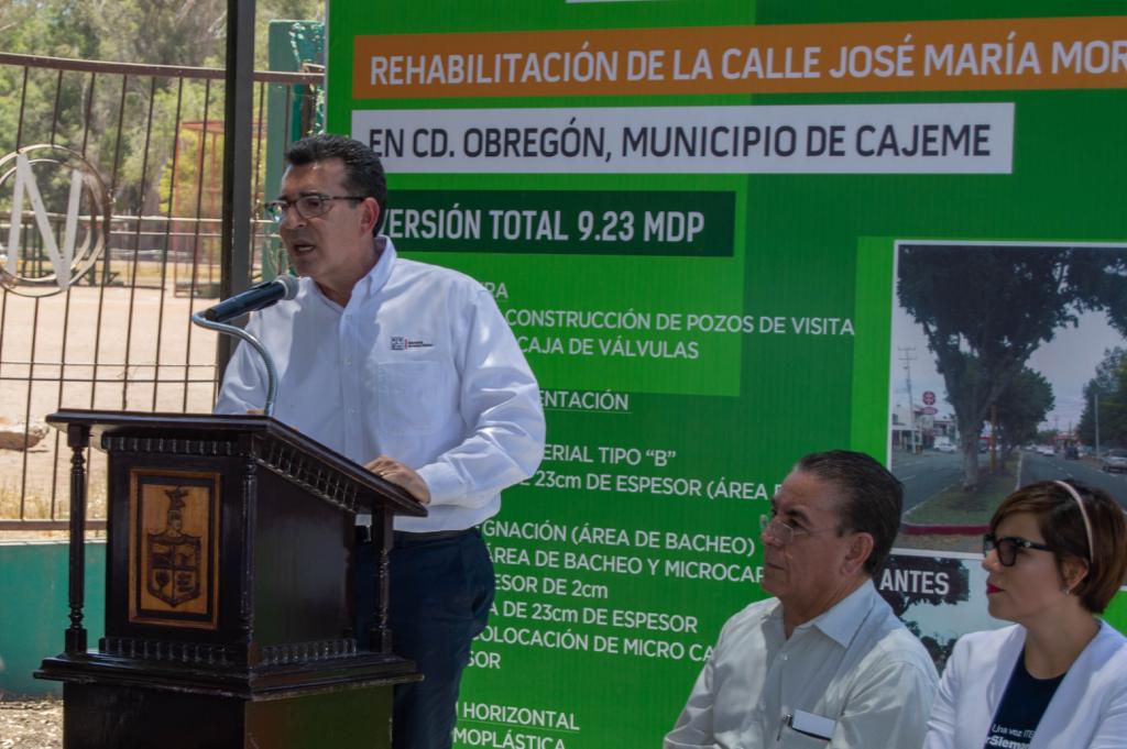 Acompañado por Sergio Pablo Mariscal Alvarado, y Rosario Quintero Borbón, presidentes municipales de Cajeme y Navojoa, respectivamente, el secretario de Salud, en representación de la gobernadora Claudia Pavlovich Arellano, entregó seis obras de rehabilitación de calles y una de pavimentación de concreto asfáltico, por parte de la Secretaría de Infraestructura y de Desarrollo Urbano (Sidur).