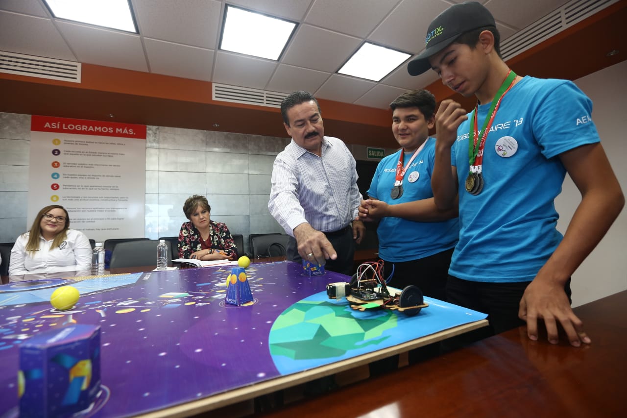 El sistema educativo estatal cuenta con verdaderos talentos en diferentes áreas del conocimiento, aseguró el secretario de Educación y Cultura, Víctor Guerrero González, al reunirse con los ganadores del tercer lugar de la Competencia Nacional de Robótica Robotix Faire 2019.