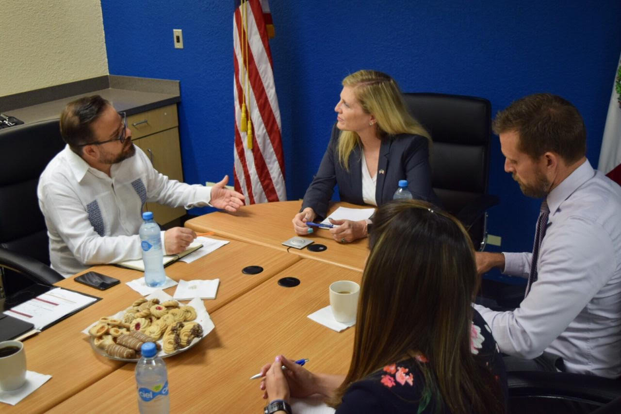 Con el fin de trazar estrategias coordinadas para contener el flujo ilegal de armamento, autos robados, entre otros asuntos de seguridad, David Anaya Cooley sostuvo una reunión de trabajo con la cónsul general de Nogales, México.