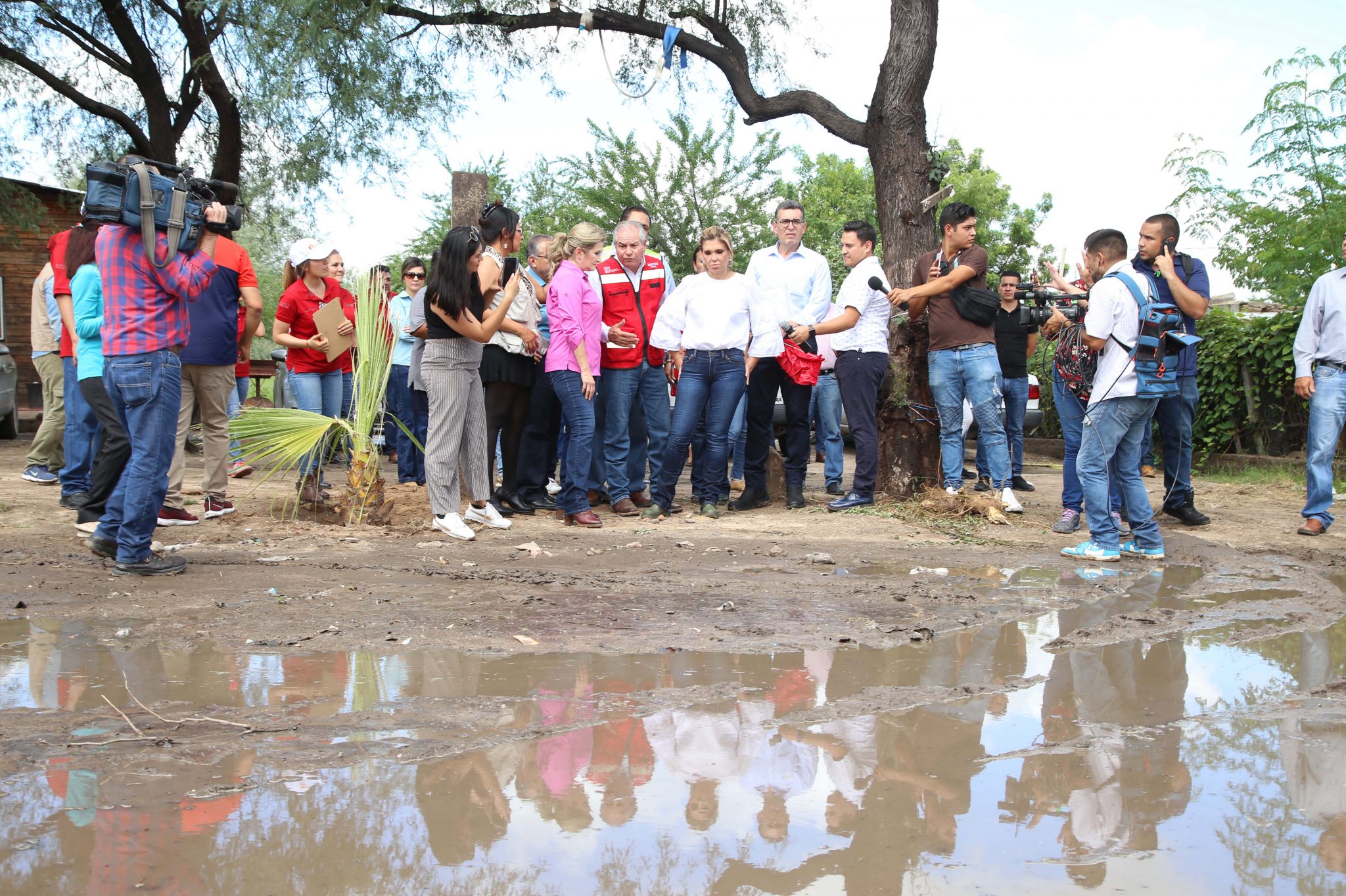 Acompañada por Celida López Cárdenas, alcaldesa de Hermosillo; Enrique Clausen Iberri, secretario de Salud; Elia Sallard Hernández, directora general de la Comisión de Vivienda del Estado de Sonora (Coves); y Alberto Flores Chong, coordinador Estatal de Protección Civil, la mandataria estatal visitó a las familias afectadas y escuchó atentamente sus peticiones, con el compromiso de resolver necesidades básicas.