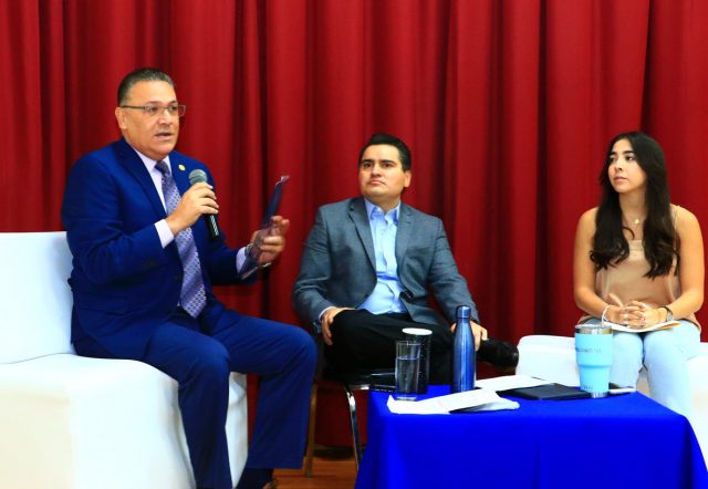 Durante la inauguración del primer Foro Universitario: Sonora sin plástico estuvo presente Héctor Pérez Montesinos, coordinador del Programa Institucional de Sustentabilidad; Nitzia Corina Gradías Ahumada, diputada local y presidenta de la Comisión de Ciencia y Tecnología; Luis Mario Rivera Aguilar, diputado local y presidente de la Comisión de Energía, Medio Ambiente y Cambio Climático.