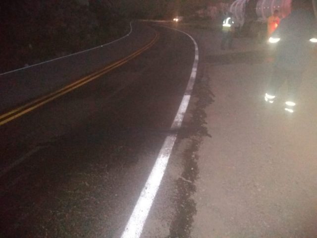 Agentes de la Policía Federal división de caminos, cerraron el tránsito en ambos sentidos sobre la Carretera Federal número Dos, tramo Imuris-Cananea, debido a un derrame de ácido sulfúrico que generó la fuga desde un camión cisterna, al norte de Sonora.