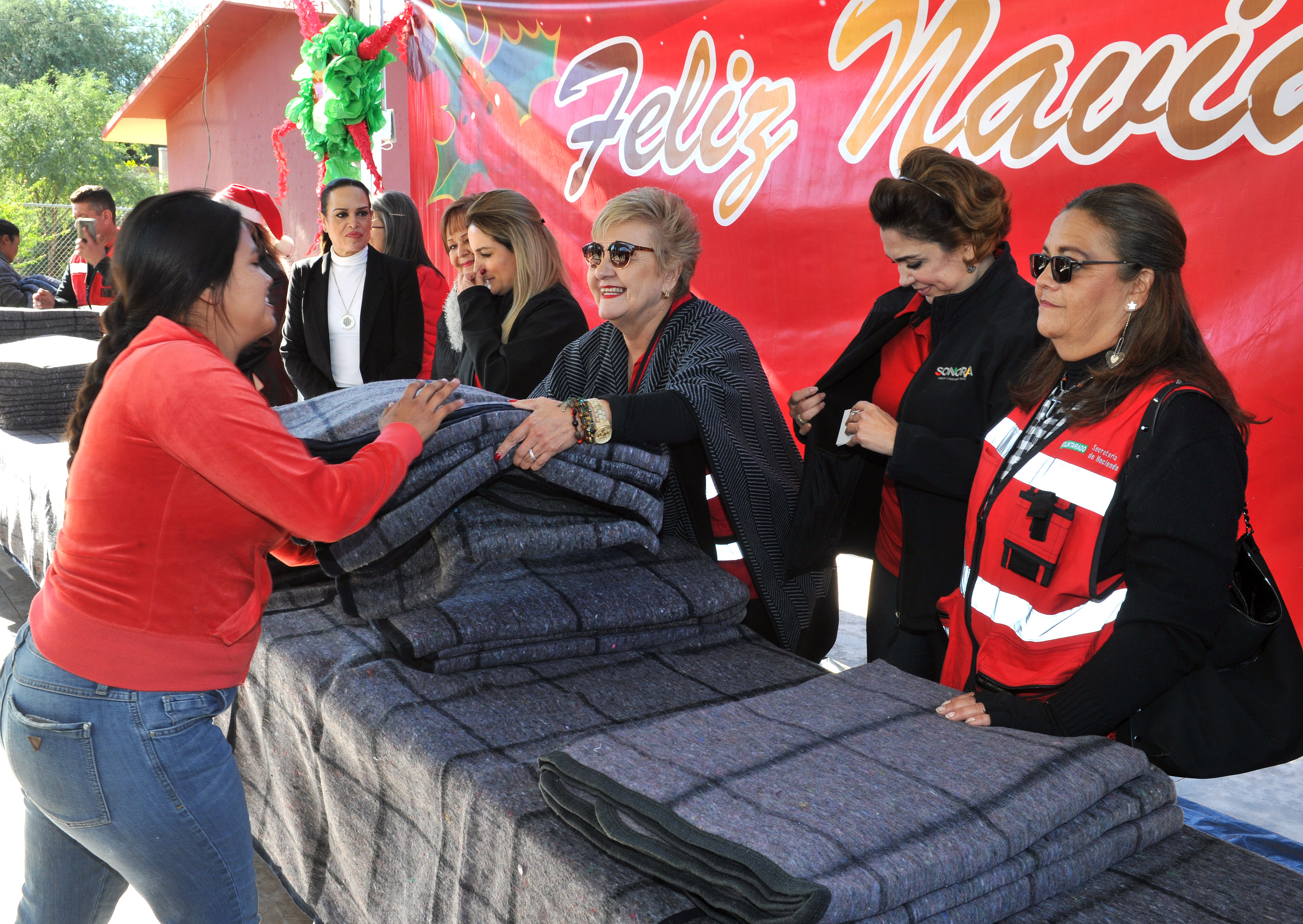 | Para apoyar a familias vulnerables de los Ejidos Molino de Camou y el Zacatón, y como parte de la campaña “Abriguemos una esperanza” de DIF Sonora, el Voluntariado de la Secretaría de Hacienda, entregó cobijas que ayudarán a mitigar las bajas temperaturas.