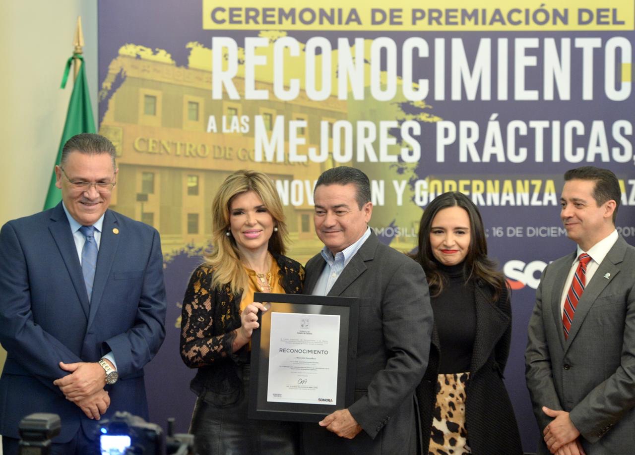 La participación de los servidores públicos y su aporte a soluciones con creatividad, conocimiento y colaboración fue reconocida por la gobernadora Claudia Pavlovich Arellano, durante la premiación a las Mejores Prácticas, Innovación y Gobernanza Eficaz, las cuales están respaldadas por instituciones de educación superior, organismos de la sociedad civil y la iniciativa privada.