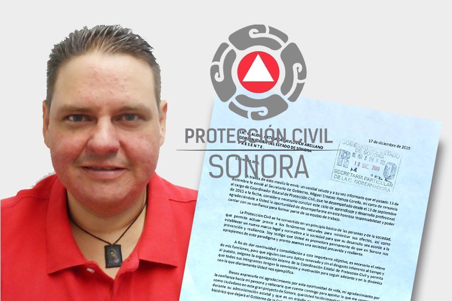“tras una introspección he decidido cerrar mi ciclo profesional al frente de la Unidad Estatal de Protección Civil para emprender nuevos proyectos a partir del 2020. Mi gratitud total al Secretario de Gobierno Miguel Ernesto Pompa Corella y a la Gobernadora Claudia Pavlovich por la confianza y la oportunidad brindada”.