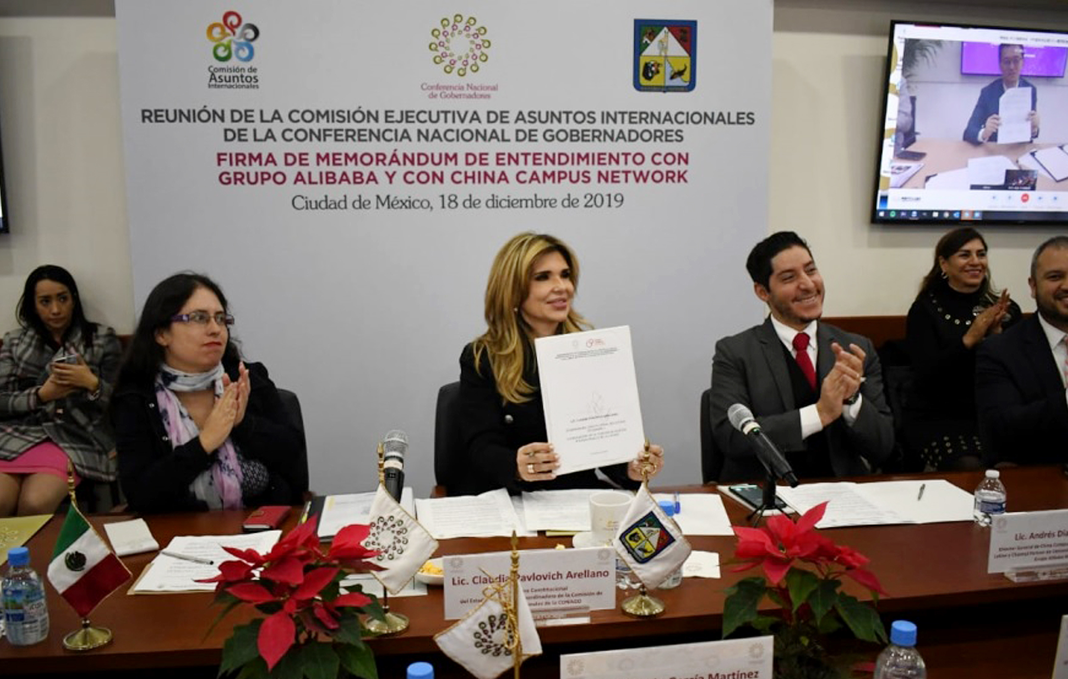 En beneficio del desarrollo económico de las entidades, además de fortalecer la capacitación y profesionalización de los jóvenes universitarios de México, la gobernadora Claudia Pavlovich Arellano, como coordinadora de la Comisión de Asuntos Internacionales, de la Conferencia Nacional de Gobernadores (Conago), firmó memorándums de entendimiento con China Campus Network y con la plataforma en línea Alibaba.