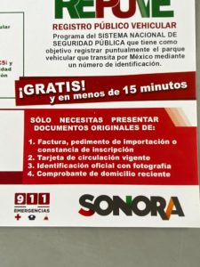 Al momento solo el 14% de los vehículos de modelo 2010 o años anteriores están registrados en Sonora y los modelos recientes se registran desde que son fabricados. El trámite es gratuito y se puede realizar en 4 módulos que se encuentran en el Centro de Usos Múltiples en Hermosillo, también la Agencia unicada en el Parque Industrial y en Cajeme y Navojoa. Se detalló la importancia de este trámite pues el 80% de los delitosnse comete a bordo de un vehículo.