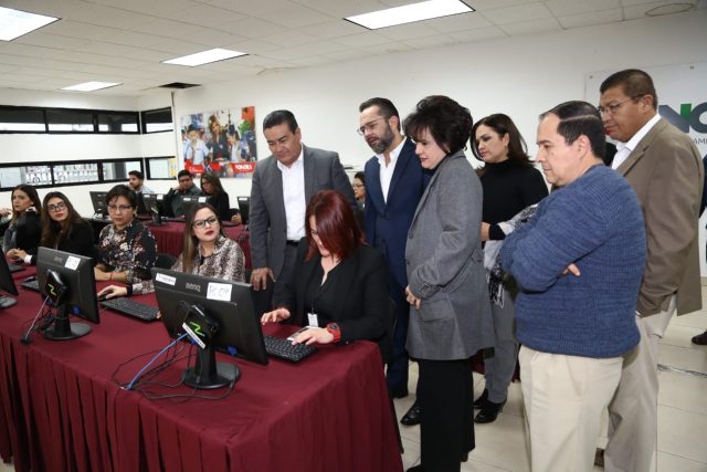 Acompañados por Patricia Calles Villegas, subsecretaria de Educación Básica y la subdelegada de la SEP en Sonora, Guadalupe Gálvez Navarro, así como el presidente de la Asociación Estatal de Padres de Familia, Cecilio Luna, los titulares de la SEC y del Registro Civil, constataron la agilidad del proceso de Preinscripciones en Línea mediante los equipos de cómputo instalados en la sala de capacitación.