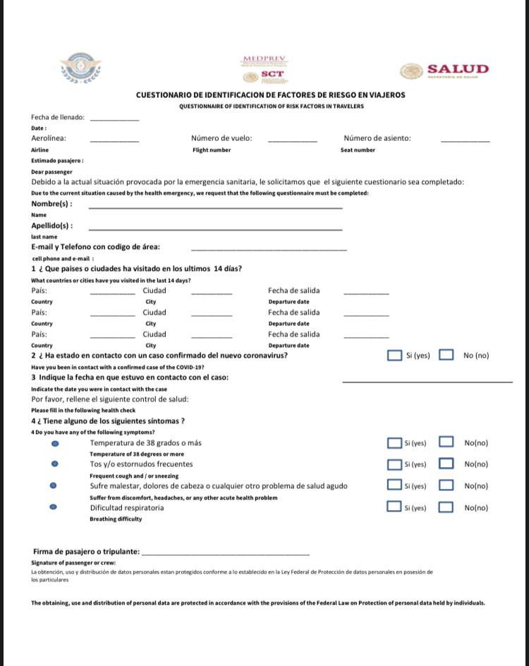 A partir de la contingencia, los pasajeros ahora deberán responder un formato con preguntas relacionadas con el estado de salud, estancia y destinos y ahí el personal capacitado los canalizará de acuerdo al resultado a una sala de espera final o a los módulos del personal de salud que hay.