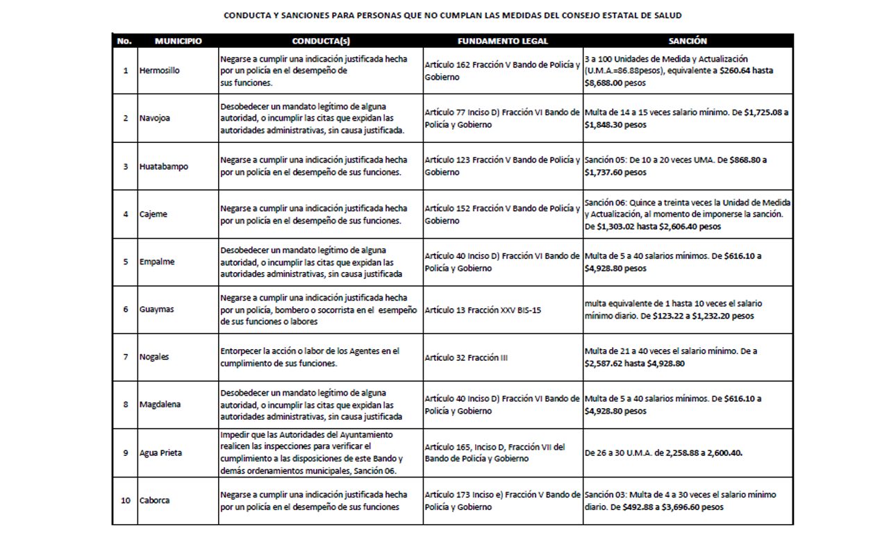A continuación los principales municipios de Sonora y el monto de las multas: