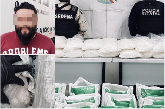 Oficiales de la PESP acudieron en apoyo, donde fueron informados sobre las irregularidades en la carga de supuesto alimento para camarón, una vez inspeccionada la carga se realizó el aseguramiento del chofer, identificado como Julio “N” de 37 años de edad, conductor del vehículo marca Kenworth en el que había 18 paquetes con sustancia granulada al parecer narcótico, 1 paquete con sustancia sólida de color café y varias tabletas de color azul.