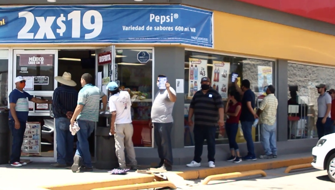 Así, en menor cantidad pero la gente salía con su cartón y su botana, algunos lo dejaban en el carro y hacían fila de nuevo no sin antes aguantar la rechifla de los demás que esperaban turno. La sana distancia y el riesgo de enfermarse pues poco valió pues aunque muchos portaban cubrebocas, muchos iban como en un día normal y en algunos puntos para cubrirse del sol pues se hacían “bolita” en la sombra de una barda o un árbol.