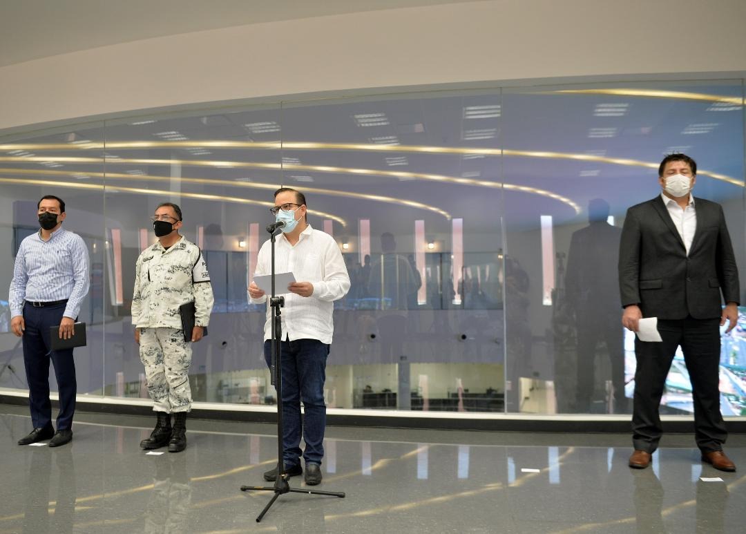 En conferencia de prensa José Jaime Valenzuela Tiznado, secretario técnico de la Mesa acompañado del titular de la Secretaría de Seguridad Pública (SSP) del Estado, David Anaya Cooley; el delegado estatal de la Fiscalía General de la República, Pavel Humberto Núñez y el coordinador General de la Guardia Nacional, Inspector Héctor Sánchez Solares, resaltó elreforzamiento operativo de parte de los tres niveles de gobierno que se realiza en los municipios del norte del estado con el propósito de inhibir el delito.