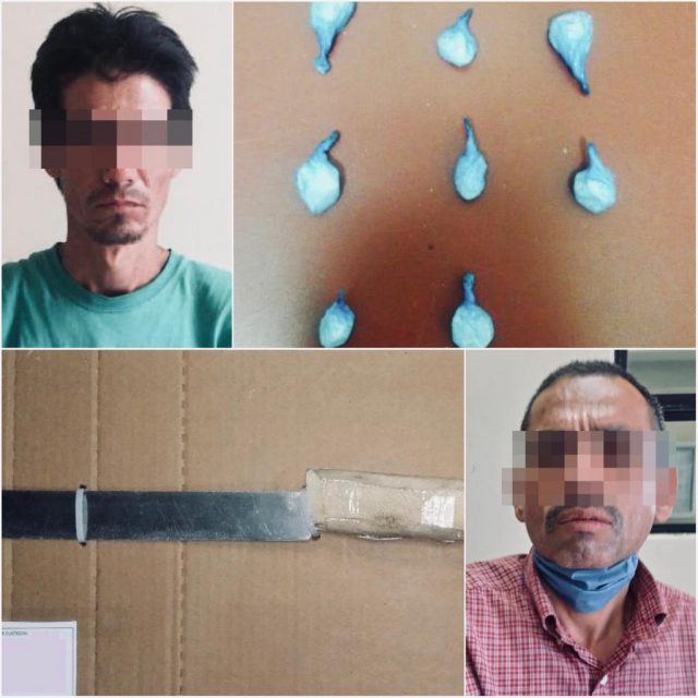 Elementos de la Policía Estatal de Seguridad Pública (PESP) realizaron la detención de dos personas por el probable delito contra la salud y posesión de arma blanca, en operativos que realizan en municipios del norte del estado.