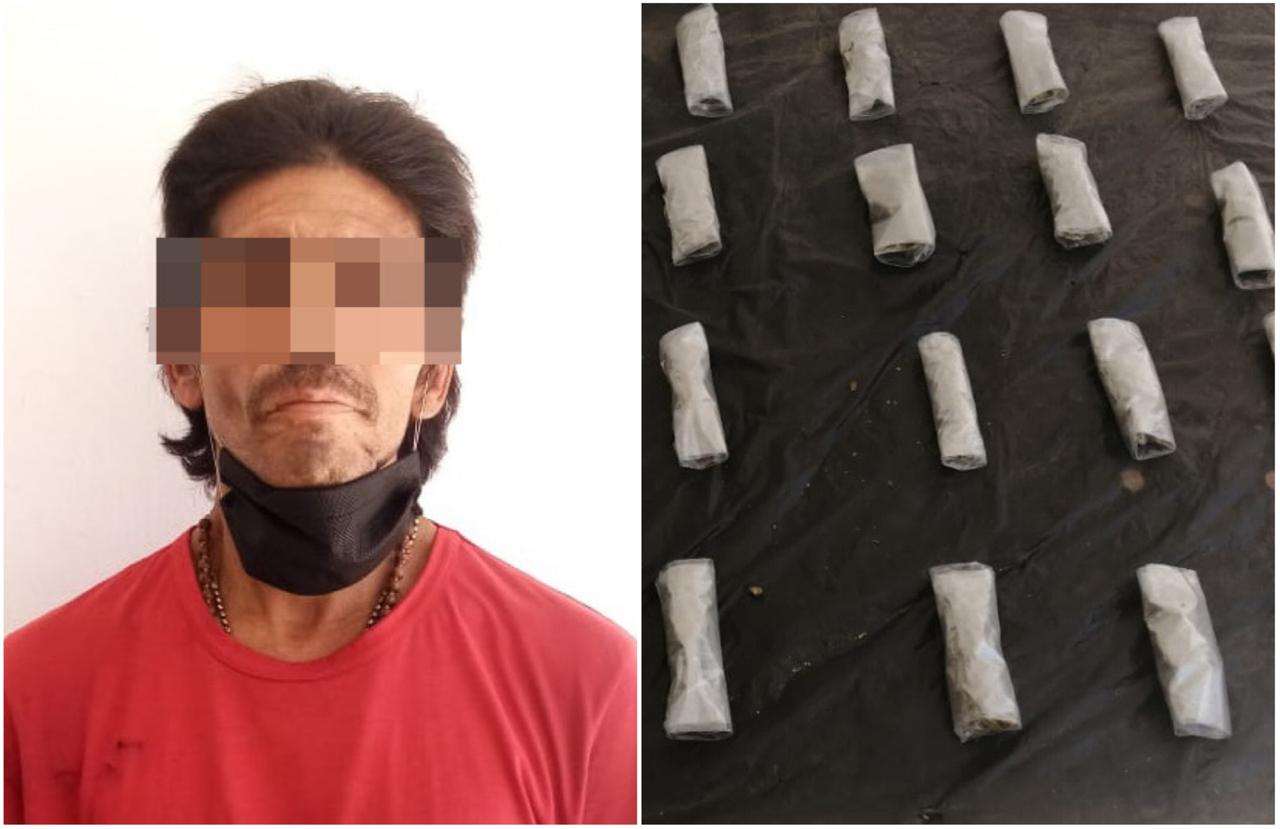 Los policías le informaron sobre la falta y le solicitaron realizar la inspección correspondiente, encontrando dentro de la mochila una bolsa que contenía 16 paquetes con hierba verde y seca, con características físicas a las de un narcótico.