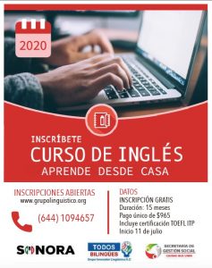 La fecha límite de inscripción es el día 10 de Julio del 2020, se debe ingresar al sitio de internet https://grupolinguistico.org/producto/cursos-en-linea-presenciales y si se requiere mayor información se pueden comunicar vía whatssap al teléfono 644 109 4657.
