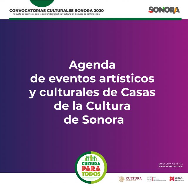 Con un fondo de 160 mil pesos, se apoyarán ocho propuestas para integrar la Agenda de eventos artísticos y culturales de Casas de la Cultura en Hermosillo, como parte del paquete de estímulos lanzado por el Gobierno del Estado, en tiempos de contingencia por Covid-19.