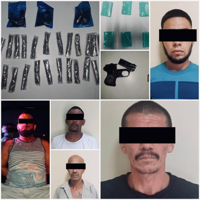 San Luis Río Colorado, Sonora; a 25 de agosto del 2020.- La Policía Estatal de Seguridad Pública (PESP) detuvo a cinco sujetos en posesión de narcótico en San Luis Río Colorado, dónde también a uno de los detenidos se le incautó un arma de fuego.