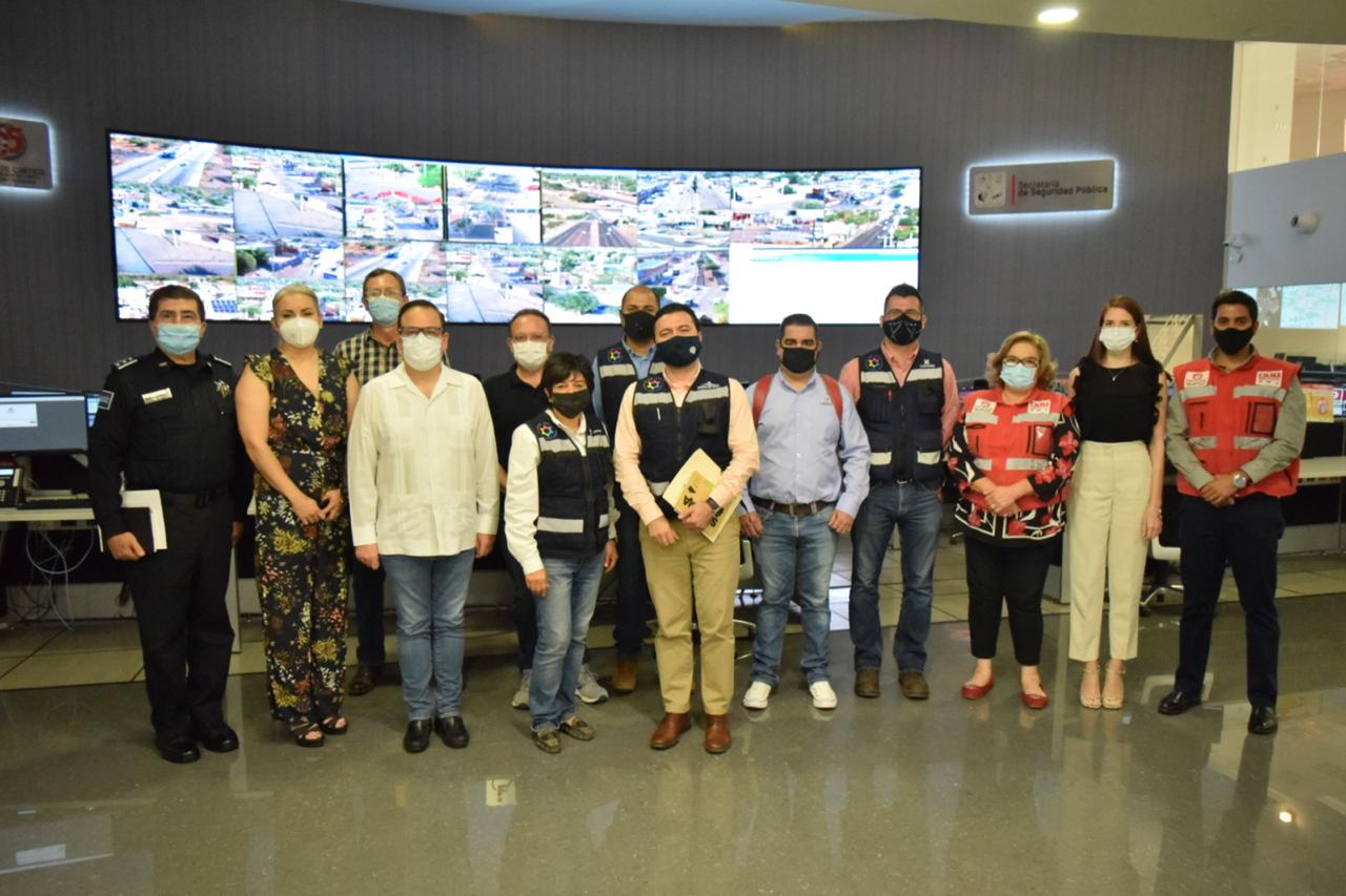 Participaron en la reunión y recorrido por el C5i Xavier García Ortiz, gerente de Seguridad Misión XXI; José Luis López Carrillo, coordinador de Seguridad, Higiene y Medio Ambiente de empresa Caffenio; Amalia Urías Zepeda, gerente de Recursos Humanos Trabis; Rodrigo Armenta Castro, coordinador de Unidad Interna de Protección Civil del CIAD; Moisés Obed Ochoa, coordinador de Auditorías Drive Caffenio y José Romero Martínez, coordinador de Control Interno Caffenio.